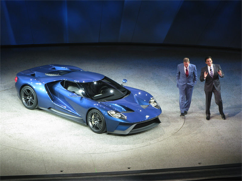 North American Car of the Year, as voted by a panel of fifty automotive journalists, went to the VW Golf, a mild surprise. Truck of the Year went to Ford’s new aluminum-body F150, a game changer and no surprise. AutoWeek gave its Best in Show to the Ford GT, a mid-engine, mostly carbon fiber body stunner of a prototype slated for production later this year. Powered by a 600+ V6, this is the spiritual successor to the original GT40 that won the 24 Hours of LeMans fifty years ago. No prices were announced, but AutoWeek guessed in the $200-300,000 range. Manufacturers generally use their show space at Cobo Hall for reveals, but Ford used the adjacent Joe Louis Arena, where the Red Wings play hockey, to unveil the GT. Ford CEO Mark Fields and Executive Chairman Bill Ford shared the stage. The Shelby GT350R Mustang also debuted at NAIAS, but the GT was the undisputed star of this event.