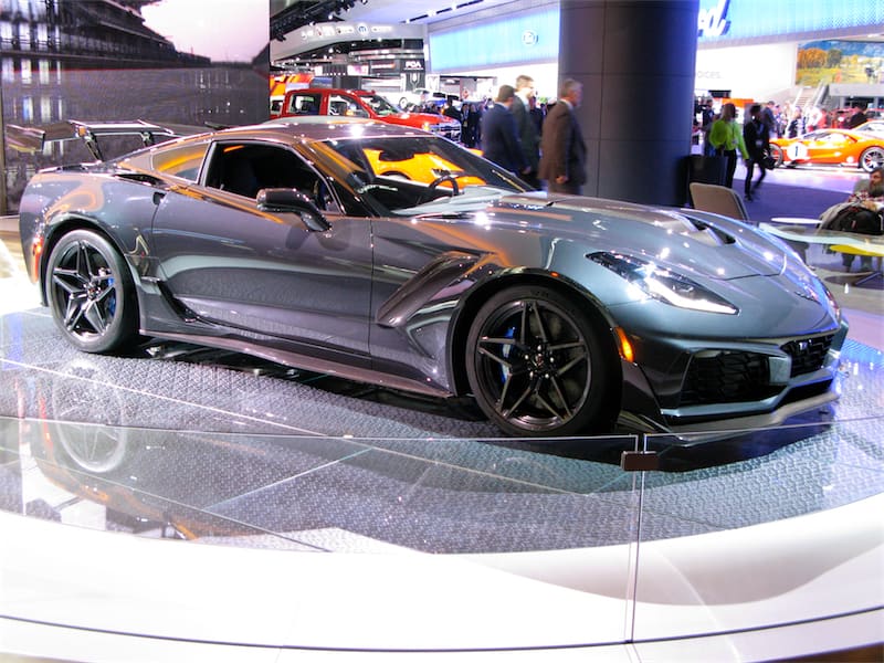 Revealed at Dubai’s Motor Show November 12, 2017, and in Car and Driver’s December 2017 issue, Corvette’s 2019 ZR1 was still a star attraction at Detroit’s North American International Auto Show (NAIAS) held in January 2018. The show spanned sixteen days: January 14th and 15th for media, 16th and 17th for industry, 18th for a charity event, and 20th through 28th for the public. In previous years, GM held one of the early press conferences the first media day. But press conferences were scarce this year and no GM division even held one. On the Saturday before the show opened, GM did have an invitation-only, off-site event to unveil its new Chevrolet and GMC full size pickups. I arrived mid-afternoon of the first media day, spent the night, then came back for a less-crowded second day photo shoot.