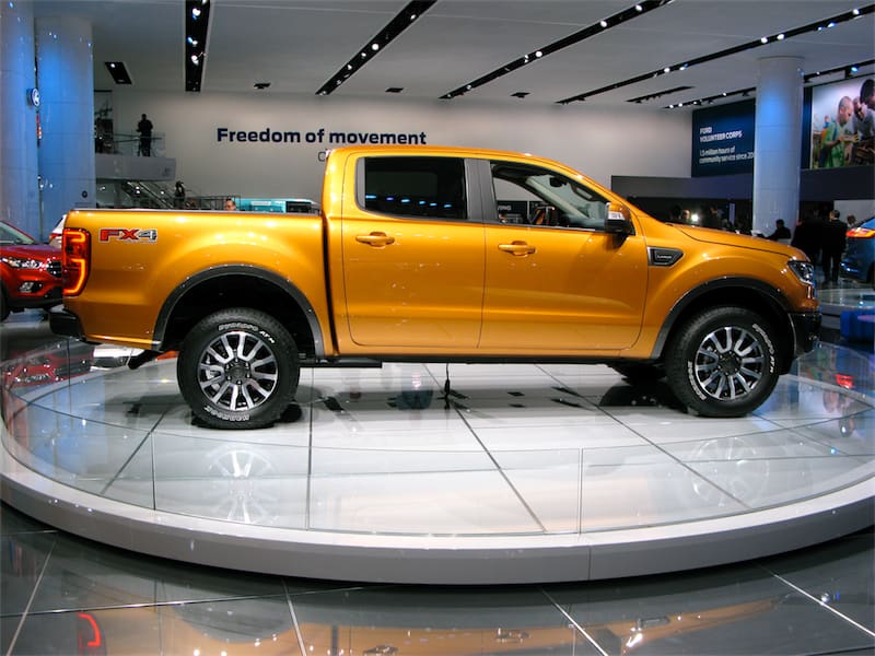 Following the Bullitt, there’s a shot of Ford’s new mid-size Ranger pickup. Ford’s been selling these in other markets for several years, but brought it here following the success of GM’s mid-size Colorado and GMC Canyon. I dropped in a shot of Kia’s new Stinger rear drive sedan, aimed squarely at BMW. Handsome and getting good press, but automatic only. The silver jewel on the turntable is a prototype of Honda’s new Insight Hybrid. In its category, I think the 2018 Honda Accord is back on top with handsome styling and superb drivetrain options, including a six-speed manual. But if the production Insight looks close to the concept...wow. Compared to Prius styling...well, forget that. No comparison.